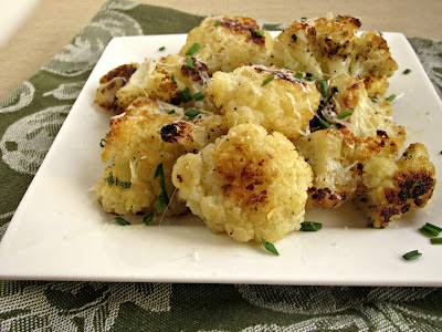 When I was growing up, one of my favorite dishes was my mother's fried cauliflower. She would dredge the florets in egg and breadcrumbs and then pan fry them until they were golden. Veggie heaven. As an adult, I like to avoid the pan fried part as often as possible and this version makes a remarkably satisfying substitute.